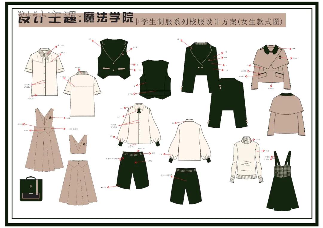 随着人们审美层次的不断提高,整齐、高贵典雅的英伦风格与传统文化相结合。为了让整个校园一年四季莘莘学子的着装保持统一协调,“刺桐花开”,吉祥富贵,充满了人们对未来的美好希望。将其运用到校服中,可以体现出校服在设计上的创新和富有中国文化。