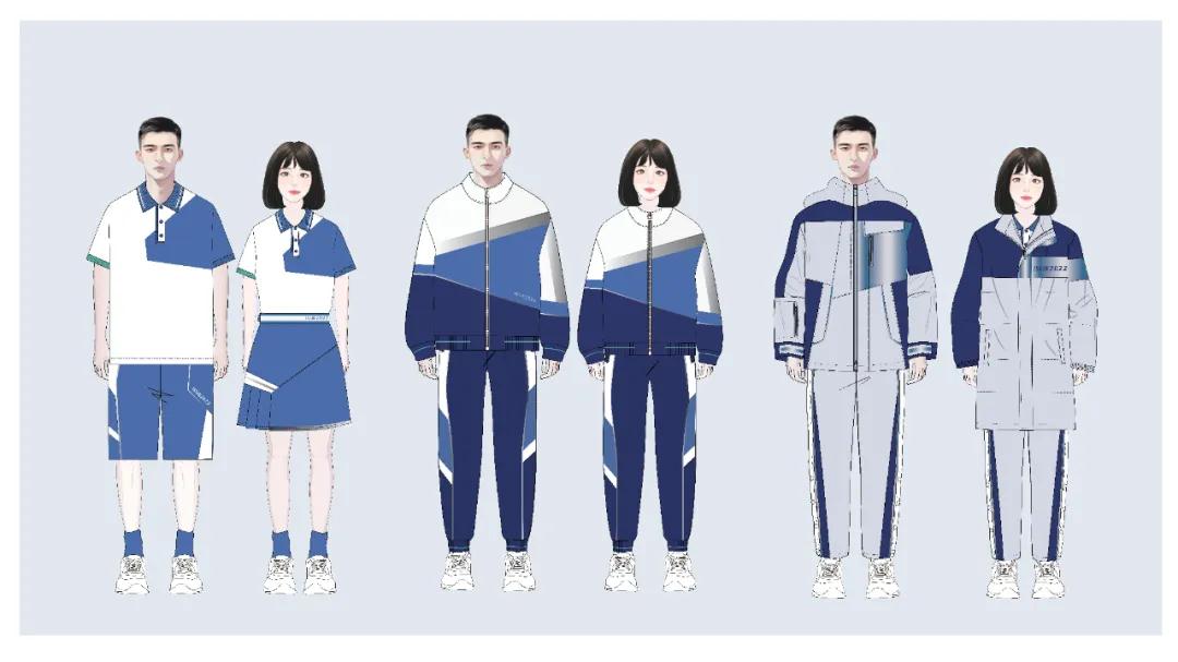 随着科技时代不断发展,未来也将涌现出更多有想法、有个性的人,因此该系列以卡其色为主,代表率性、干练、个性与自由,根据流行趋势将款式分割设计,整体款式新颖、颜色低调耐看;根据流行元素将棋盘格拆分再设计,呈现出不一样的校服,使其具有代表性与独特性的同时更有高级时尚感。