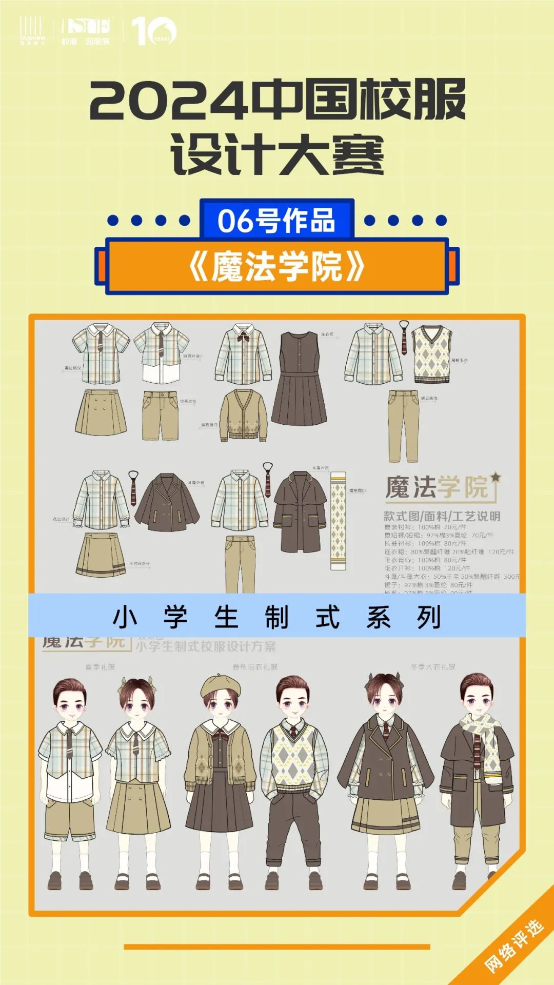 2024 ISUE国际校服·园服展(上海)将于5月8-10日在国家会展中心(上海)盛大回归!本次ISUE上海展展览面积将超过18万平方米,2500+参展企业,参观总量预计超20万人次。 恰逢展会十周年,同期一系列多样化活动赛事将展现精彩纷呈的舞台,商贸配对、高峰论坛等互动交流也满足专业观众在ISUE展会上的各类服务和市场拓展的需求,吸引来自全国中小学校、教育后勤管理部门及校园服饰行业精英汇聚于此。 由ISUE国际校服·园服展组委会举办的2024中国校服设计大赛,以“文化和教育引领,共育中国校服之美”为主题,决赛将于2024年5月8-10日在国家会展中心(上海)举行。大赛通过广泛征集校服创意和设计作品,吸引各服装生产企业、专业设计机构与个人设计师关注和踊跃参与,旨在为校服产业改革赋能,让校服更好地发挥服育价值,共同推动中国校服产业的可持续健康的发展。 随着入围名单的产生,本届大赛“小学生制式系列”设计作品正式进入线上投票环节! 1 本次投票系列包括小学生运动,小学生制式、初中生运动,初中生制式、高中生运动、高中生制式、幼儿园园服七个系列,可对各系列分别投票; 2 一个微信号在整个投票期间只能对各系列进行一次投票,不支持一个微信号进行重复投票; 3 决赛得分:评委打分平均分+对应系列线上投票加分; 4 截止时间2024年4月14日24:00前“参赛作品网上投票”大于或等于600票的参赛作品,决赛加3分;小于600票的参赛作品,决赛加0分。 特别提醒:本次大赛采用线下样衣评审方式评出特等奖、一等奖、二等奖与三等奖。5月8日将对获奖作品现场颁奖并进行特等奖和一等奖的走秀展示。 小学生制式系列 #1 水墨画被视为中国传统瑰宝,即中国画。其采用纸墨笔砚等中国传统工具,通过清水的多少引为浓墨、淡墨、干墨、湿墨、焦墨等,画出不同浓淡层次,后缀以中国传统色,别有一番韵味称为“墨韵”;中国文化中把兰花视作为高洁、典雅、爱国等美好的象征,被誉为花中君子优雅之典范;把四季常青竹子赋予了纯洁、虚心、有节、刚直等人格化的文化象征,形成“竹报平安”、“胸有成竹”、“势如破竹"等成语;传统的靛青色更因其来源和工艺,有着“青出于蓝胜于蓝”的寓意。“墨蕴君行 衣显兰竹”本系列是以上传统文化精神的提炼,汲取传统服装中盘扣、立领、偏襟和刺绣为灵感,用多种手法将兰竹图案等融入设计中,体现出“书香国风”的新中式风格;让每一位穿着的莘莘学子都能拥有兰竹的高贵品德,使徽文化在常校服着装中一一展现,并深深烙入心中... #2 本系列校服设计以“派对范儿”为主题,采用国际时尚风格,以经典优雅的款型融入时尚学院风貌,打造气质优雅、经典贵族感校服,从小培养孩子们绅士风度及淑女情怀。 #3 本系列小学制式礼服组灵感来源于阳光恬静,丰收的金色狄季,看到一片落下的树叶便知劳绩的季节来临,将学生们勤奋读书。春耕狄收的美好凤愿寄情于此;系列颜色以微暖阳光的美拉德色系为主调,深浅不同的暖色系叠加搭配打造丰富的视觉层次感。 #4 本系列名为“新派学院风”,是小学生制式系列。本组设计采用烟灰色为主色调,辅以格纹,菱形为特点。带给学生一种低调沉稳的书香气质,点缀了美式校园的复古黄和枫叶棕色,即体现了学生的活泼与青春的气息。夏装口袋做了刺绣结合数码印花工艺,立体有层次。秋装衣背心采用了提花与绞花的工艺。 #5 本系列灵感来源于欧洲贵族精神,贵族精神则包括高贵的气质、宽厚的爱心、悲悯的情怀,承担的勇气以及坚韧的生命力、人格的尊严、人性的良知,始终恪守“美德和荣誉高于一切”的原则,是一种高尚的人格理想、高贵的精神气质和高雅的审美情趣。 #6 魔术,是梦幻与现实的交织,是神秘与奇迹的碰撞。在魔法学院里,学生们一起运用各自的魔法才能,齐心协力,打败统治世界的黑暗势力,维护正义,它象征着力量与勇敢!魔法学院主题系列校服秉承梦幻与传承的设计理念,在色彩选择上,以复古典雅为主色调,运用创新魔法图案点缀,打造现代梦幻复古格调。在款式选择上,传承魔法斗篷的款式,创新剪裁版型,展现出魔法学院各种搞怪,独具特色的校园风貌,让学生穿出典雅,穿出创新,穿出魔力感! #7 本系列设计名称为《橘子汽水》,灵感来源于是大自然清晨升起的阳光铺撒在大地上,象征着新的希望,代表着学生朝气蓬勃、积极向上,拥有着对生活充满热情阳光、活泼好动的天性,有着丰富的内涵,容易发现事物美好的一面。制服能一定程度上传播社会礼仪文化,培养青少年的社会规范性。美观、舒适、安全是制服的主要表征,在制服设计中加入一定的时尚元素,既不失制服的规范,又能凸显孩子的青春活力,培养孩子的审美能力。有着不服输的个性、性格阳光、充满朝气。 #8 设计灵感来源于落日的沙滩,采用真实而自然的大自然调色---赤红色、卡其色,其颜色运用在服装中表达出大自然的自然美,也呈现出服装的独特之美,展示出不一样的新时尚。 #9 文字是文化的密码,也是心灵深处开出的花。中华文字源远流长,从甲骨文到如今的简体字,不断发展并保留至今。该款式以此为灵感,将甲骨文的形状和符号解构,采用浓墨浅淡、错落有致的画法,转化为现代的设计语言,形成独特的标志和装饰。运用灌木沙色和奶白搭配,结合细节、配件等装饰,进一步增强设计的创意和视