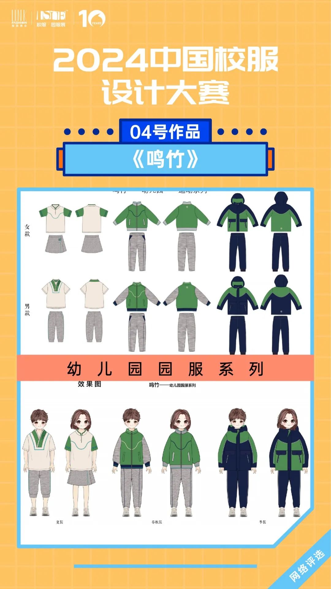 2024 ISUE国际校服·园服展(上海)将于5月8-10日在国家会展中心(上海)盛大回归!本次ISUE上海展展览面积将超过18万平方米,2500+参展企业,参观总量预计超20万人次。 恰逢展会十周年,同期一系列多样化活动赛事将展现精彩纷呈的舞台,商贸配对、高峰论坛等互动交流也满足专业观众在ISUE展会上的各类服务和市场拓展的需求,吸引来自全国中小学校、教育后勤管理部门及校园服饰行业精英汇聚于此。 由全联纺织服装业商会和ISUE国际校服·园服展联合举办的“2024中国幼儿园园服设计大赛”决赛将于2024年5月8-10日在国家会展中心(上海)举行。本届大赛以“文化和教育引领,共育中国校服之美”为主题,通过广泛征集校服创意和设计作品,吸引各服装生产企业、专业设计机构与个人设计师关注和踊跃参与,旨在正确引导社会各界对园服的认知与关注,充分展示幼儿形象,传承服饰教育精神,切实保障幼儿的身心健康。 随着入围名单的产生,本届大赛“幼儿园园服系列”设计作品正式进入线上投票环节! 1 本次投票系列包括小学生运动,小学生制式、初中生运动,初中生制式、高中生运动、高中生制式、幼儿园园服七个系列,可对各系列分别投票; 2 一个微信号在整个投票期间只能对各系列进行一次投票,不支持一个微信号进行重复投票; 3 决赛得分:评委打分平均分+对应系列线上投票加分; 4 截止时间2024年4月14日24:00前“参赛作品网上投票”大于或等于600票的参赛作品,决赛加3分;小于600票的参赛作品,决赛加0分。 特别提醒:本次大赛采用线下样衣评审方式评出特等奖、一等奖、二等奖与三等奖。5月8日将对获奖作品现场颁奖并进行特等奖和一等奖的走秀展示。 幼儿园园服系列 #1 梅兰竹菊,君子之风,四时清芳。梅、兰、竹、菊是中国人感物喻志的象征,也是咏物诗和文人画中最常见的题材。代表了中华民族优美高尚的文化底蕴。是中华民族对贤者君子优秀品质最美好的愿景。将此愿景设计于幼儿园园服之上,仿佛将梅兰竹菊的美好品质传承给祖国的幼苗。 #2 本次设计作品灵感来源于种子,提取种子的成长变化为元素,分析颜色和形状表达为使园服能够在潜移默化中以美求真、以美激情、以美育人,向幼儿播撒真善美的种子。 #3 款式设计来源于“童年”,童年是天马行空的,就像一条傲游在大海里小鱼;童年是无忧无虑的,就像整天嬉闹的浪娃娃;童年是纯真甜美的,就像一条小小的船,里面装满了糖果;而童年更像是一首歌,歌里有我们的欢声笑语。 #4 “鸣竹”取自国学启蒙经典《千字文》, 以“凤鸣于竹,白驹食场”为主题,寓意幼童们的有爱、有趣、有节。弘扬竹之精神,将传统“竹文化”价值观融入现代幼儿园生活,以竹育德,在快乐中成长,在实践中学习。 #5 本系列幼儿园运动灵感来源于梦幻童年的游乐场欢乐时光,打造出轻松榆悦、童趣健康的时尚校服。 #6 古人云:“腹有诗书气自华,唯有书香最致远”。本系列主要运用中式立领,中式廓形和不规则的色块线条分割等元素,以及雅致的紫色为主色,搭配蓝绿色,很好的诠释出孩子们书香儒雅的书香气质。蕴含着学校极致的为孩子们打造出富有书香气息的氛围,让孩子们像幼嫩的根芽,向下扎根祖国,吸取中华民族五千年文化的营养,让学子们散发着浓浓的儒雅书香气质。 #7 提取巴蜀三星堆元素做图案设计结合中国传统服饰汉服结构;传统与现代相融合,让传统文化在现代社会中焕发出新的生机。 #8 此款系列幼儿园校服采用了蓝色与橙色作为主色。幼儿园是孩子们第二个家,是孩子们活跃玩耍的地方,天蓝色代表自由,开朗,大方。橙色代表活跃,向上。幼儿园的孩子适合用鲜艳明朗的颜色衬托出孩子们的天真,纯洁,活跃和最至善的心灵。幼儿园侧是庇护孩子们童真的“庇护所”,借鉴了童装的简洁时尚所设计的一款校服。 #9 以童年来进行设计,童年给人的感觉往往是充满想象力,天马行空的,具有活力的。在色彩上选择柔和的天空蓝为主色调,在元素上选择祥云样式,纸飞机,爱心等具有中国童年代表性的构成来进行设计,结合线条使整体版面充满活力。在涂鸦的线条方面,我们采用流畅且富有变化的笔触,使得整体版面充满动感。不同形状的涂鸦元素相互穿插,展现出童年的无拘无束和创意无限。 #10 小小少年如春天般的阳光和温暖,乐观向上的精神,所学知识常常能与“举一反三”回报老师的教导! #11 每棵大树都曾只是一粒种子;为下一次春天的开篇,种下一树的铺垫.以孩童户外郊野场景为灵感。以自然之色为基调,营造轻松活力的户外氛围。像林间草地映射在湖中的晕影,如同大自然的玄虚之镜;仿佛是草丛间漫出的细微色彩。 幼儿园园服系列 大赛网络评选投票通道开启 关注公众号“ISUE校服园服展”参与投票 为喜爱作品助力吧! 投票截止时间:4月14日24点 一个微信号每系列仅限一票![]()